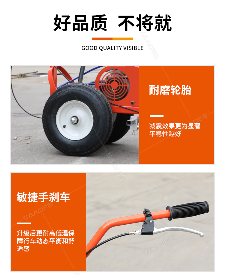 小型手推式道路劃線機(jī)是一種在道路、停車場、廣場和跑道等平整地面上劃出不同約束、指引和警示等規(guī)則限制標(biāo)志的路面施工機(jī)械。最常見的就是在馬路上劃斑馬線,在路上劃車庫線