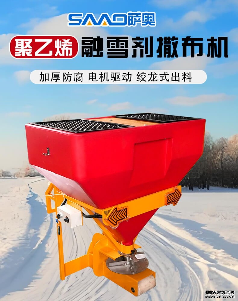 融雪劑撒布機(jī)是車載式撒布機(jī),適用于冰雪路面防滑沙料和融雪劑的撒布,是市政公路、高速公路的融雪撒布的便利設(shè)備。