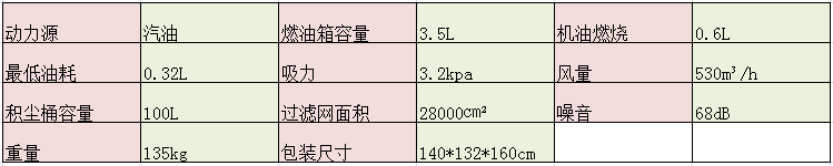 2.動力源:汽油發(fā)動機帶動風(fēng)葉倉,吸力大小可調(diào),依靠燃燒汽油產(chǎn)生動力,加一次油可以連續(xù)工作2-3小時,動力強勁。