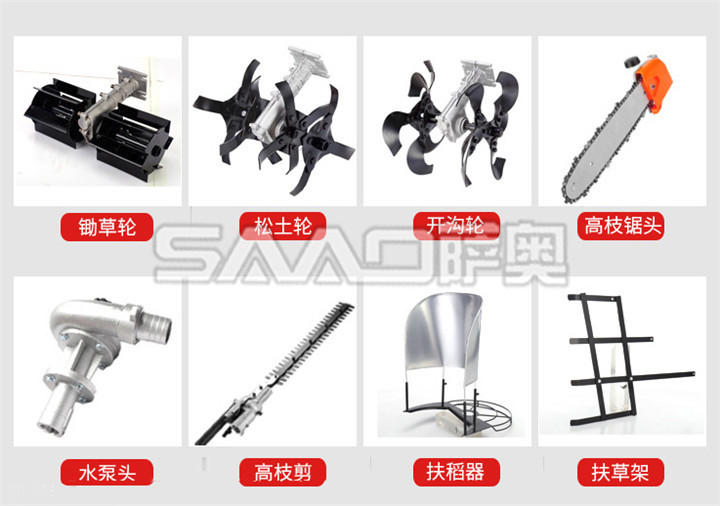 薩奧小型背負(fù)式多功能收割機(jī)廣泛用于,收割小麥、水稻、青稞、麻類、豆類等農(nóng)作物。換上相應(yīng)的刀具,裝上上下托板和安全的防護(hù)罩,還可以收割灌木、牧草、蘆葦及茶園枝頭修剪和花圃。小型收割機(jī)配帶汽油動力強(qiáng)勁有力,方便實(shí)用,效率高,便于攜帶及野外田地作業(yè)。突破了農(nóng)村無法進(jìn)入大型收割機(jī)收割的作業(yè)瓶頸,推進(jìn)了收獲作業(yè)的機(jī)械化,縮短了勞動周期,并讓人們從繁重的體力勞動解放出來。
